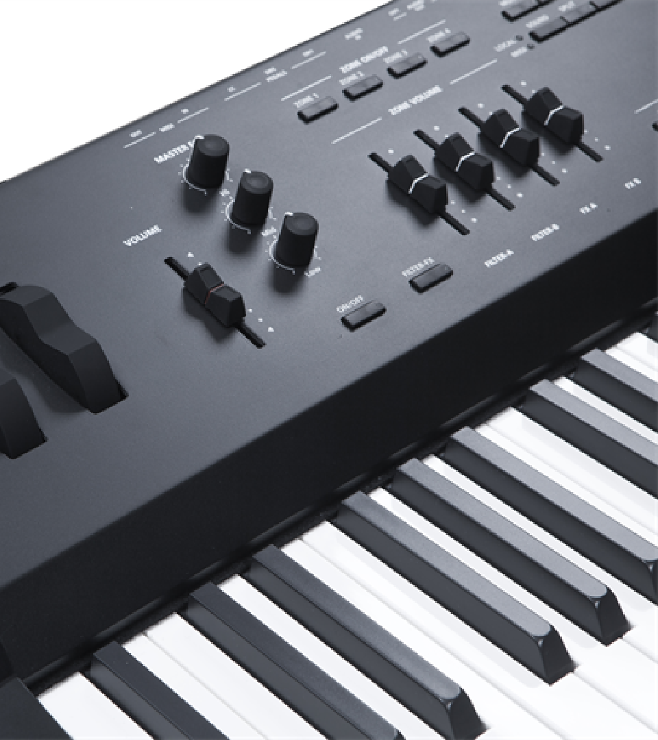 | コントローラー | 1 ピッチホイール 1 モジュレーションホイール 4 フロントパネルスライダー 2 プログラマブルスイッチ 2 トランスポーズスイッチ 2スイッチペダル入力** (1 x スイッチ/サステインペダルを含む) 1 コンティニュアスコントロールペダル入力 **スイッチペダル入力はシングルまたはデュアルのペダルスイッチ、ハーフダンパーペダルに対応。 ハーフダンプはMIDIアウトのみ |