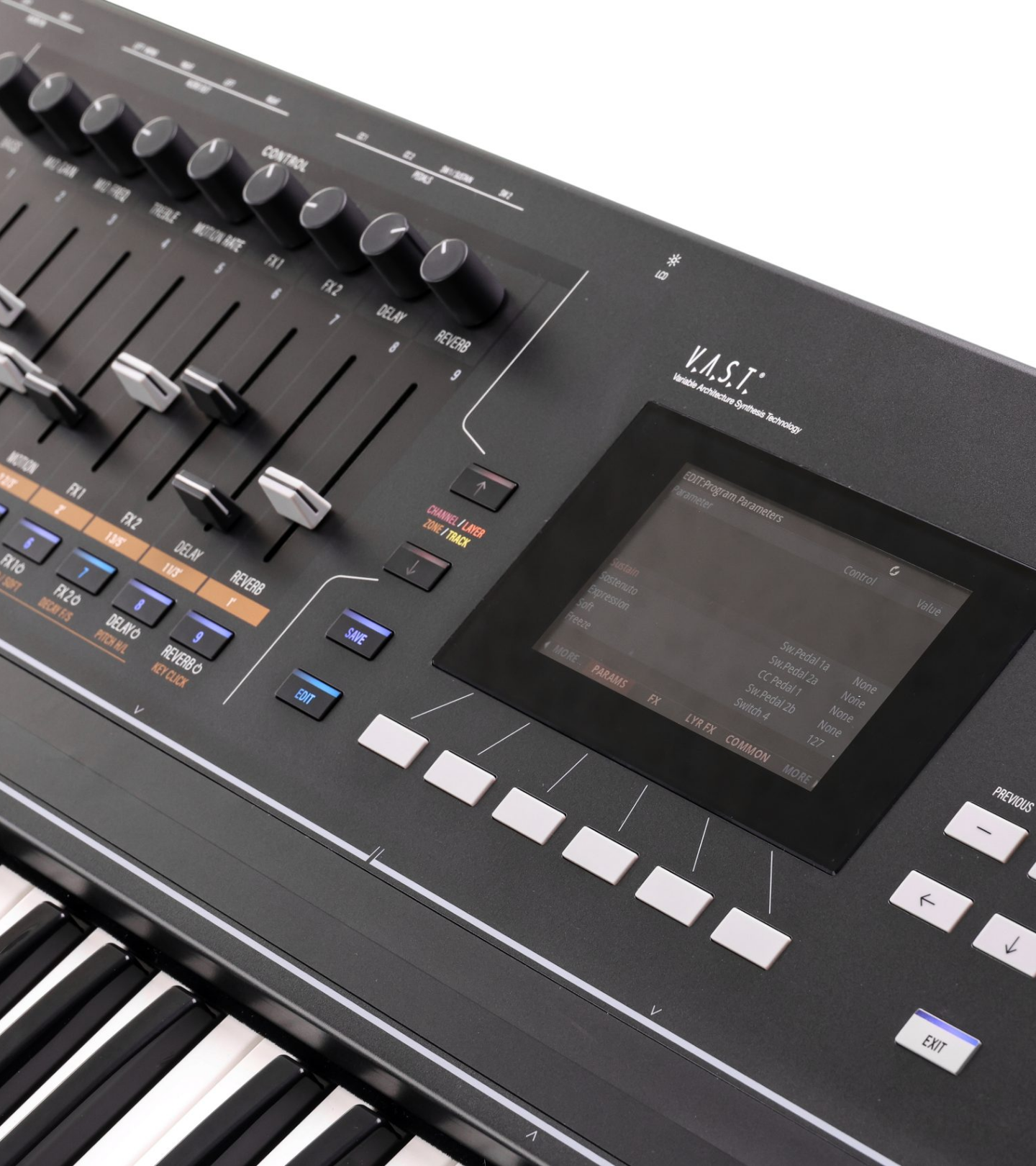 | アーキテクチャー | Dynamic VAST:強力な合成エンジンで、ユーザーがプログラム可能なDSPアルグとルーティングを備えています。 カスケード・モード:1つのレイヤーを、プログラム内の他のレイヤーのDSPにルーティングすることが可能で、最大で32の連続したレイヤーに対応 KB3 ToneReelエンジン 6オペレーターFMエンジン VA1 バーチャルアナログオシレーター+DSP |