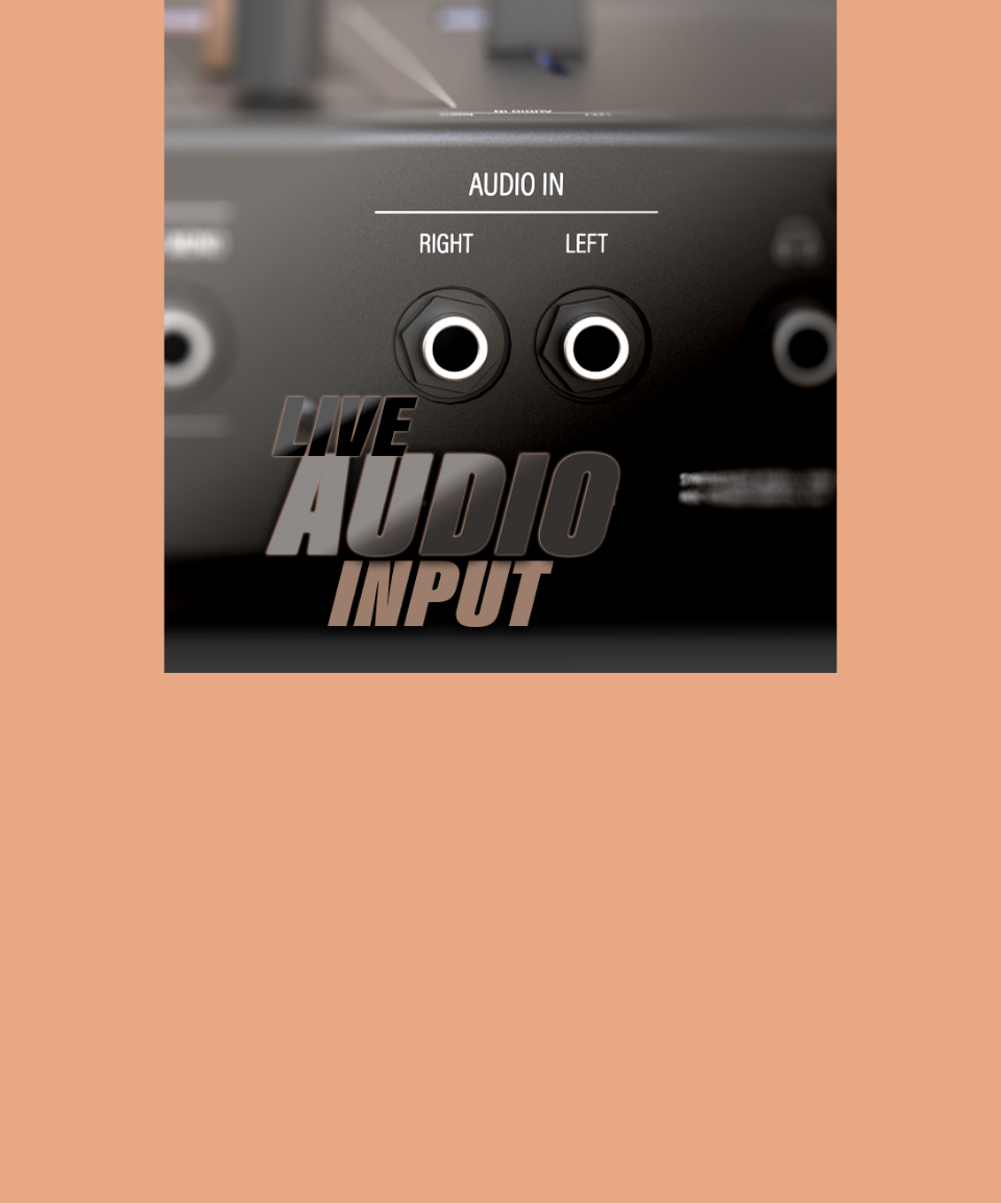 | オーディオ入力 | 2つの1/4 "ジャック(ステレオ・ペア)、ライン/インストゥルメント・レベルの信号に対応 |